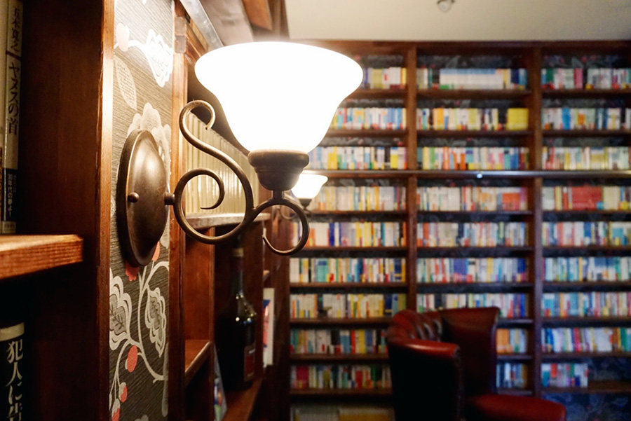 ゲストハウス露伴の共有スペースには約3,000冊の書籍が並びます。